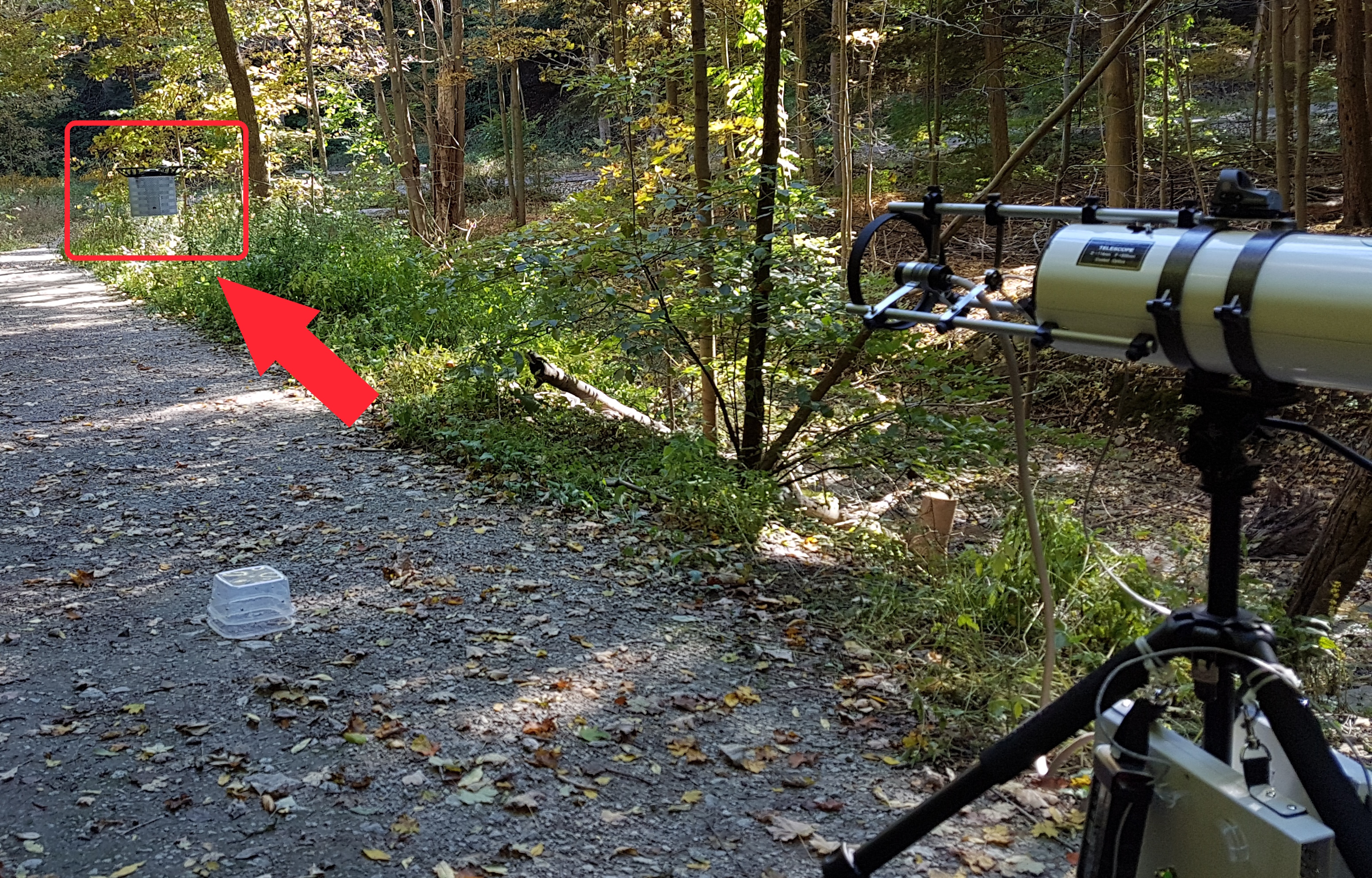A transceiver is aimed at the drone-borne RR to measure path-averaged gas concentrations using the tunable laser diode absorption spectroscopy method.